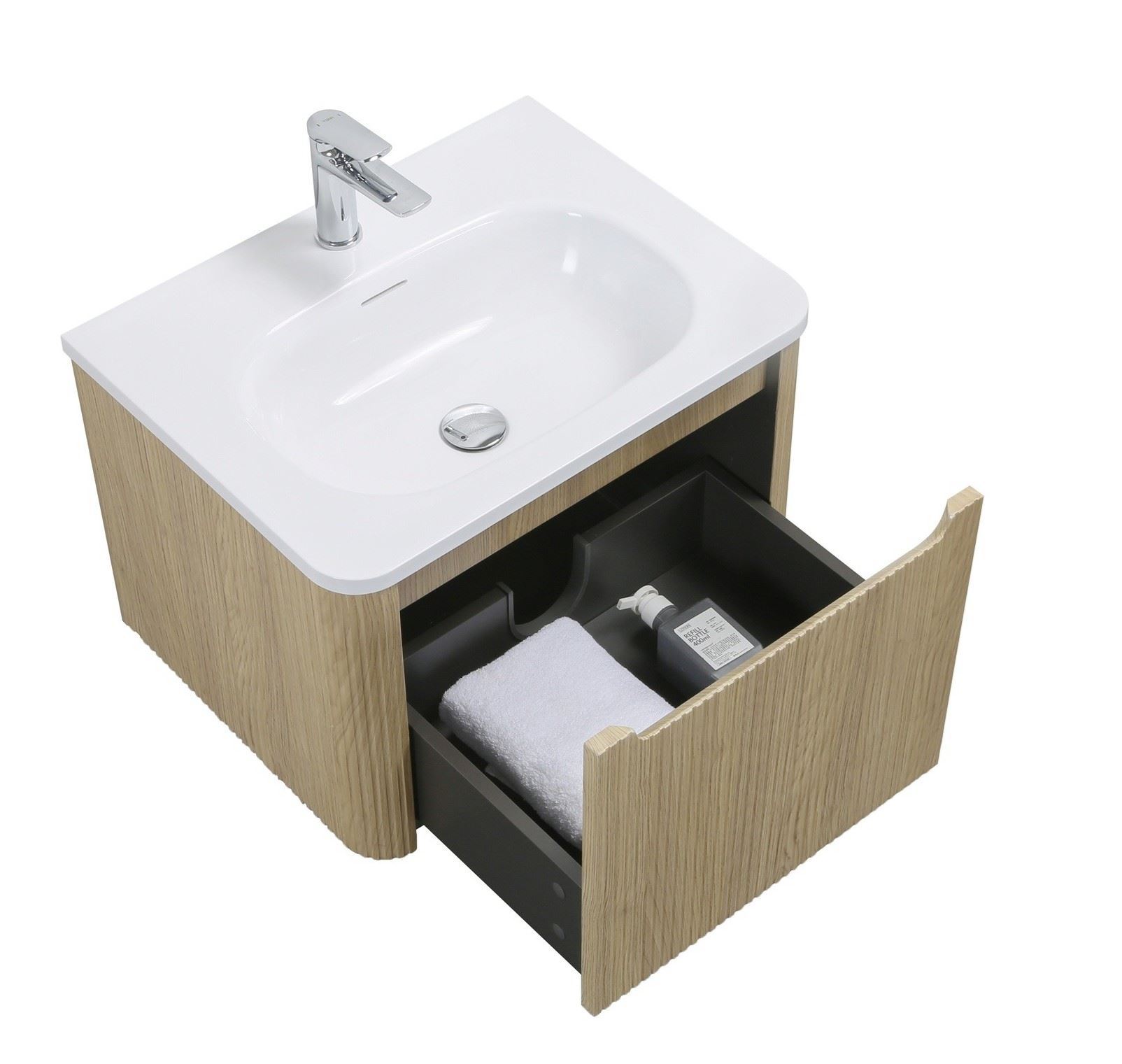 Azzaro OAK finish bathroom cabinet 600 x 465 x 425 H with 1 drawer, Fluted design all around, FREE delivery to JHB/ PRETORIA
