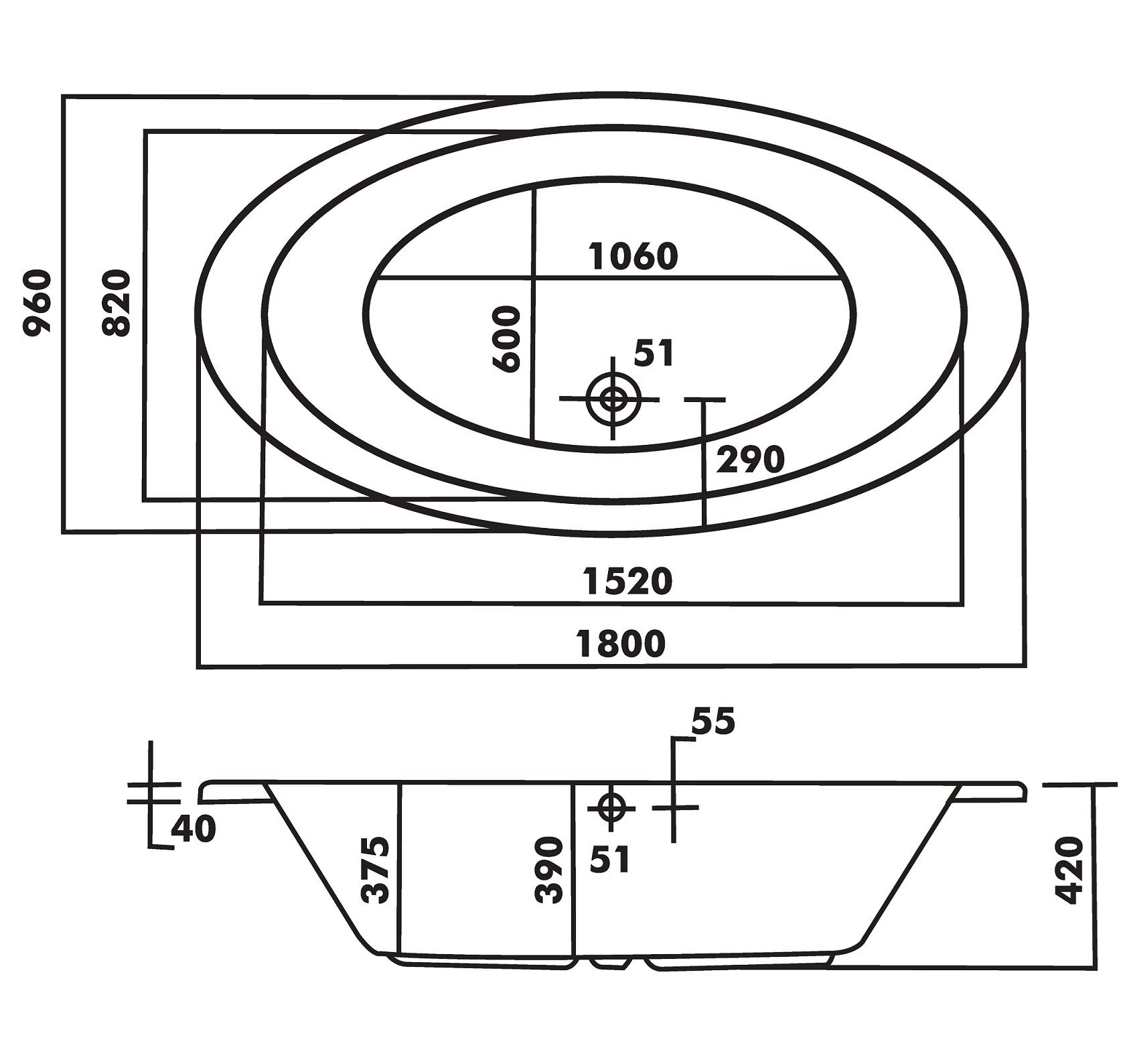 Bakoven OVAL acrylic BATH 1800 x 960 with 5 years warranty, ex Johannesburg