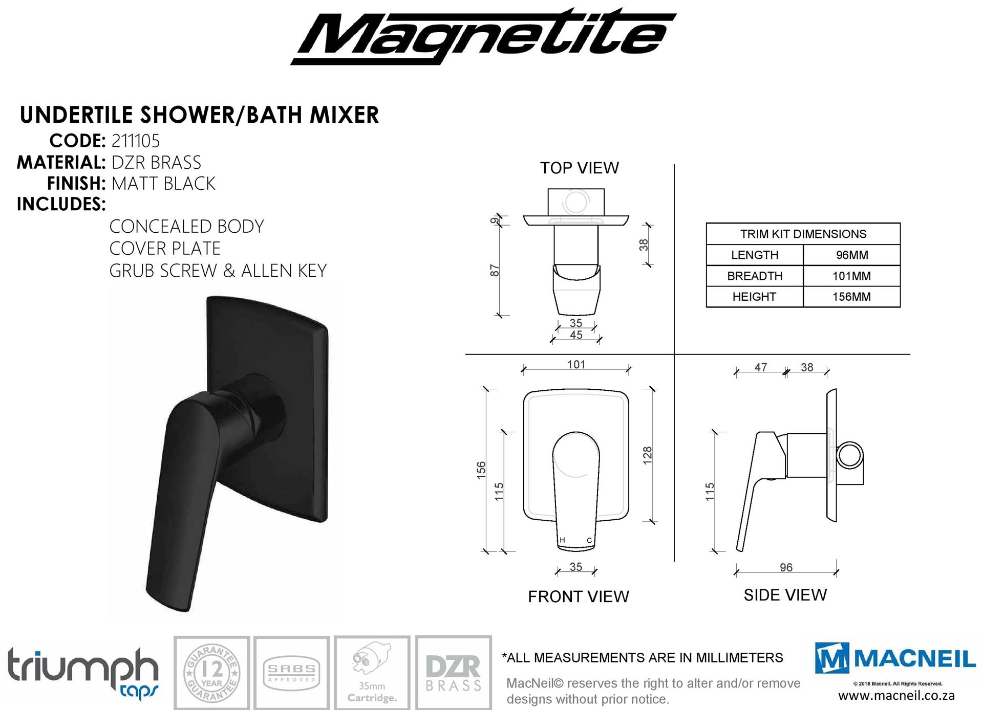 Magnetite BLACK Matte Concealed SHOWER and BATH mixer, Sale Ex Johannesburg