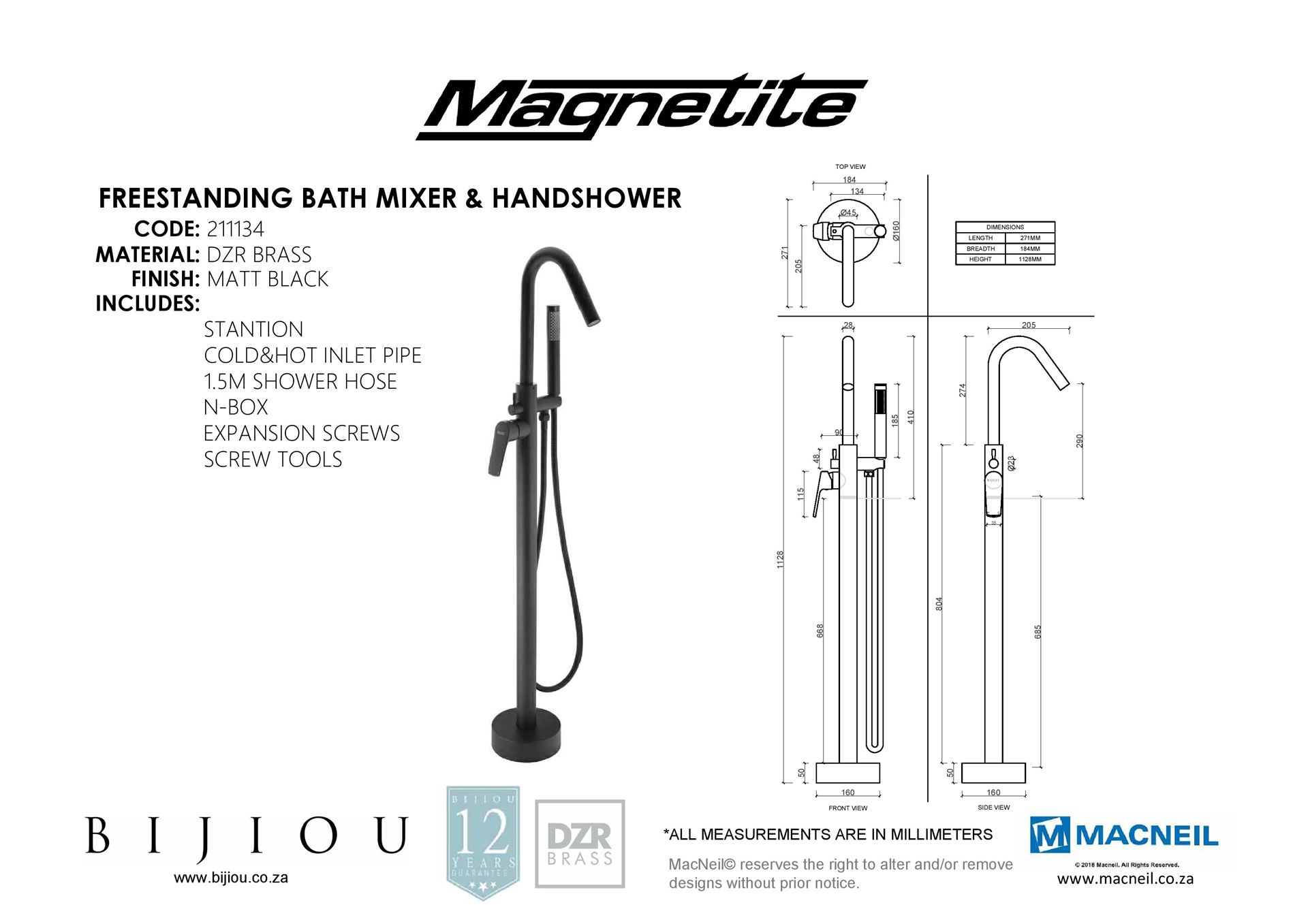 Magnetite BLACK Modern Freestanding Bath Mixer, round style, Brass with Black matte finish, SALE EX JOHANNESBURG