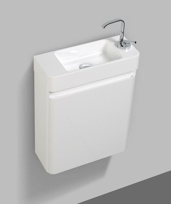 The cool rounded corners of this single wall-mounted vanity add a soft contemporary touch to modern bathrooms. With 1 door with soft closing Blum hinges, this bathroom vanity is modern simplicity at its best ideally suited to narrow bathrooms and guest toilets.