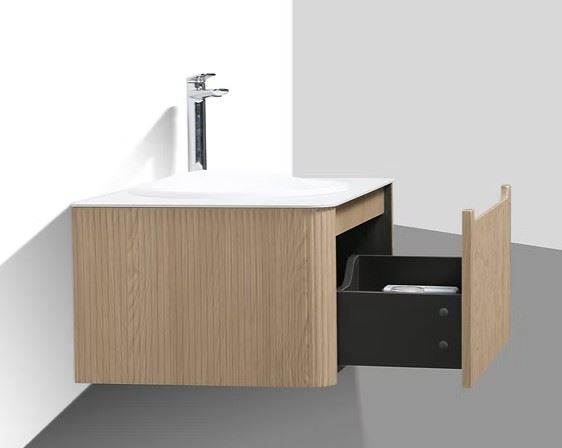 Monza OAK finish bathroom cabinet 800 x 525 x 362 H with 1 drawer, Fluted design all around, Wave quartz drop in basin, Sintered stone counter top, FREE delivery to JHB/ PRETORIA