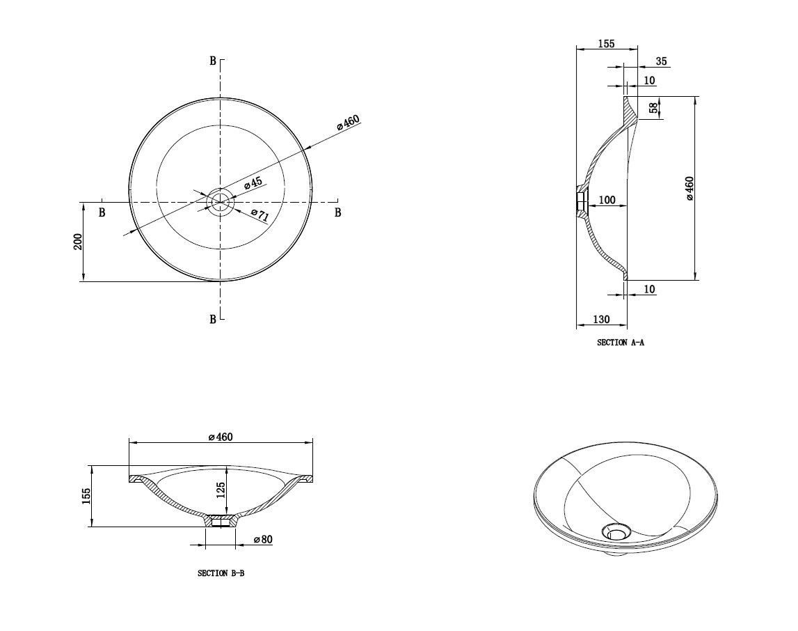 - WAVE drop in white matte basin made of Quartz composite, without overflow