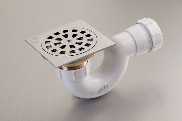 Square shower trap 100 x100 mm with square grid holes, brass and PVC