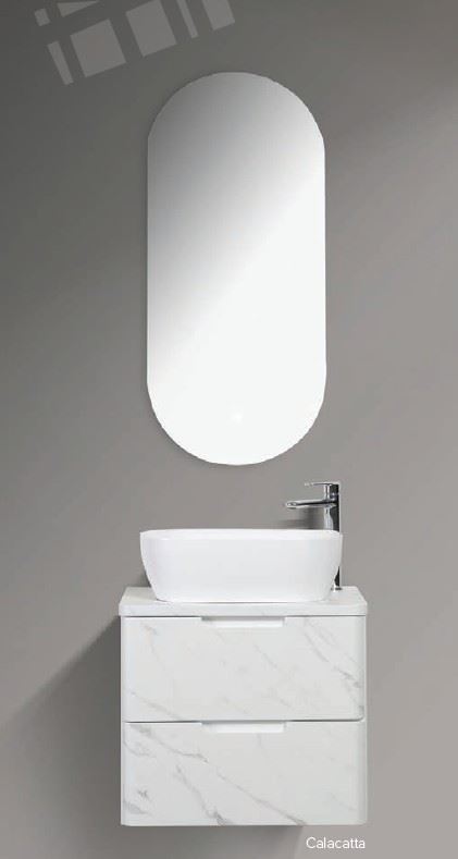 - Countertop: Calacatta Suddekor wrap with pre-drilled tap & waste basin holes
